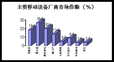 (2)市场特点:中兴通讯、华为技术等非外资厂商在GSM网络基础设备领域取得突破且取得了不凡的业绩,虽不足撼动外资品牌的霸主地位,但在移动交换系统、基站系统市场中份额迅速扩大,移动网络的迅速扩张给非外资厂商还是留有相当的空间。