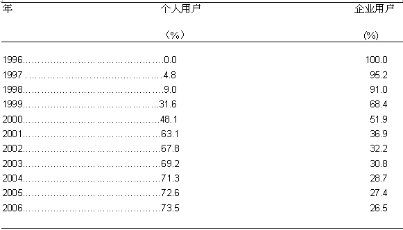 图三: 美国DSL接入服务市场企业和个人用户的发展趋势