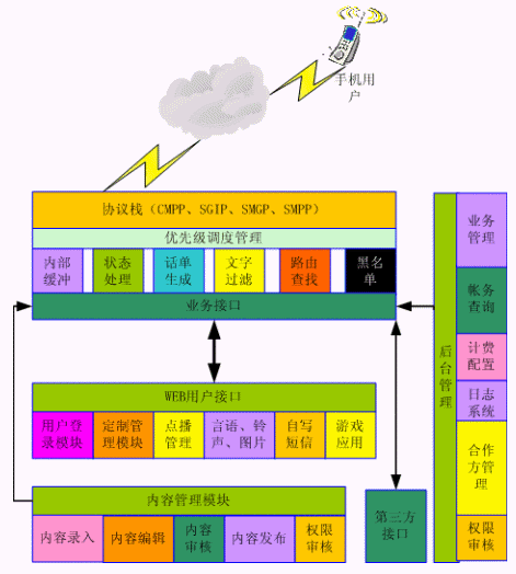 该平台可以广泛地应用于SP运营系统和多种行业的短信息应用。