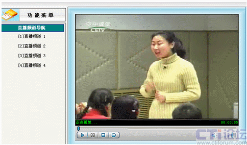 先在直播系统里启动设置好的01号频道,其他教师就可以在各自办公室通过计算机网络观看远教节目,不需淘神费力地到专门的接收室了。如下图:
