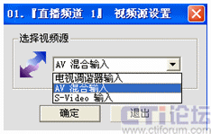 其中支持三种视频源:从电视调谐器输入是对应电视光纤信号输入,av混合输入则对应从电视卡的av端子输入,s-video输入对应从S-video端子输入。由于远教接收机只能输出av信号,我这里是连接电视卡的av端子接收远教电视节目的。因此这里选择“AV混合输入”,确定即可。