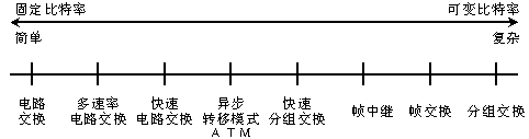 在通信网络发展过程中,出现了多种信息传输方式,它们分别适应不同业务速率,如下图所示。这里只对比电路传送模式和分组传送模式两个极端情况,对其他模式,读者可以自行参照下图和相关资料。