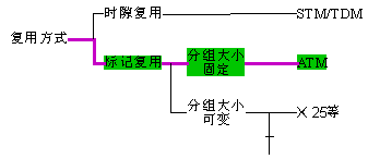 ATM即Asynchronous Transfer Mode,译为异步转移模式,或称为异步传输模式、异步传送模式。ATM是B-ISDN的核心技术。如前所述,电路交换和分组交换都不能适应未来的宽带、多速率、不同QoS业务的发展需求。为此,逐渐推出了各种传输模式。其中最有吸引力的便是ATM。它们的相互关系可以简明地表示如下。
