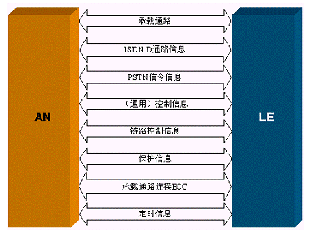 PSTN:规定了AN如何获取PSTN用户线(模拟和数字)状态,以及如何向LE传递,以便由LE最终完成呼叫控制。其中可能包括特定呼叫协议的转换和翻译以满足核心网中的LE信令标准。