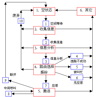 以上步骤是正常情况的呼叫处理过程,而呼叫往往因出现异常而不能顺利地进行,如主叫在通话前中途挂机、久不拨号、被叫忙、被叫久不摘机等都属于异常情况。