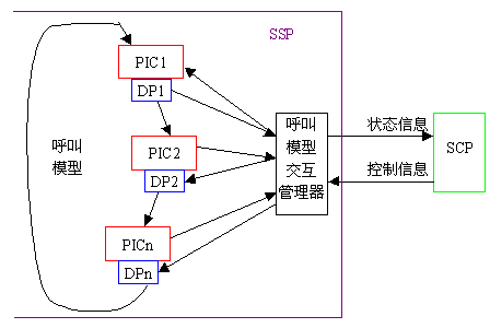 从图中看出,SSP中有呼叫模型和呼叫模型交互管理模块。DP检测点上得到的呼叫信息经呼叫模型交互管理模块送到智能网的业务控制点SCP。SCP在分析该DP点信息后,根据预先存贮好的业务逻辑执行,再经过SSP中的呼叫模型交互管理模块向BCSM发回控制命令,PIC根据命令对呼叫进行控制,完成一次SCP对智能业务的控制动作。之后,BCSM继续状态的转移,产生新的DP点上报SCP,直至呼叫结束。这就是SSP和SCP相互作用,完成智能业务的基本原理。