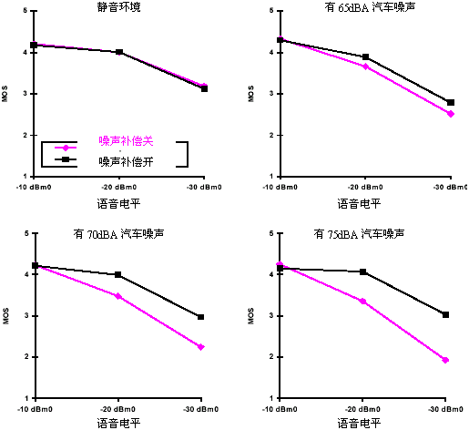 图3 在噪声补偿功能上的MOS测试显示出用户感觉到话音质量变化的明显增加;