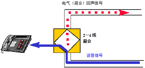回声消除器首先是在为长途应用而设计的网络中引入的。长途应用中包含过量的传播延迟,这种现象突显出了将双线连接转换为四线系统的混合线路的不完整性。这种混合线路的不完整性被描述为"信号泄漏"或因阻抗失配而导致的信号反射,称为网络电气回声(也称为混合回声)。在图1中,描述了这种现象。