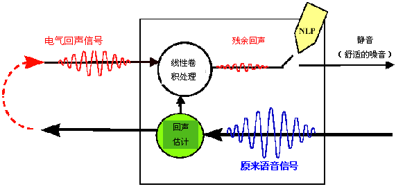 符合ITU G.168(2000)标准的回声消除器能够消除电气(混合)回声。这类设备在其运行当中采用了"两段式"方法。在第1阶段,使用线性卷积处理消除了大部分回声。在第2阶段,采用了非线性处理器(NLP)以消除残存的回声,这一部分相对较小。对残存回声信号的辨识是一件很简单的任务,这是因为它的功率电平明显低于原始的语音信号。