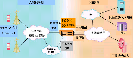 两个网络一旦连通,视频流就会在两个方向流动。从网关流向用户的视频流包含有MHP准备好的内容,但从用户流向网关的任何视频流都会被丢弃。AMR音频也会在两个方向流动