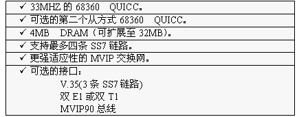 TX3220卡为SS7应用提供了一个功能强大,配置灵活的平台。它有一个66MHZ的68060协处理器,4个68360QUICC通信控制器和四口V.35或双T1或双E1网络接口。